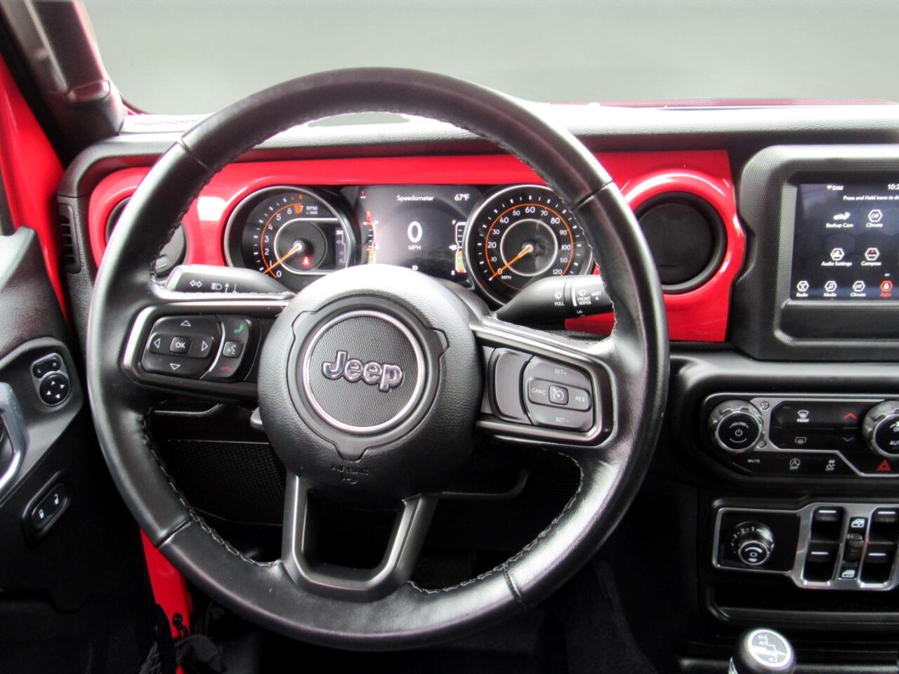 Buckle up and get ready for adventure in this vibrant Red 2021 Jeep Gladiator! This rugged beast is powered by a robust 3.6L V6 engine, ready to tackle any terrain with its part-time four-wheel drive and manual transfer case. With a towing equipment package including trailer sway control and a trailer wiring harness, you can easily bring along all your toys for the ride.