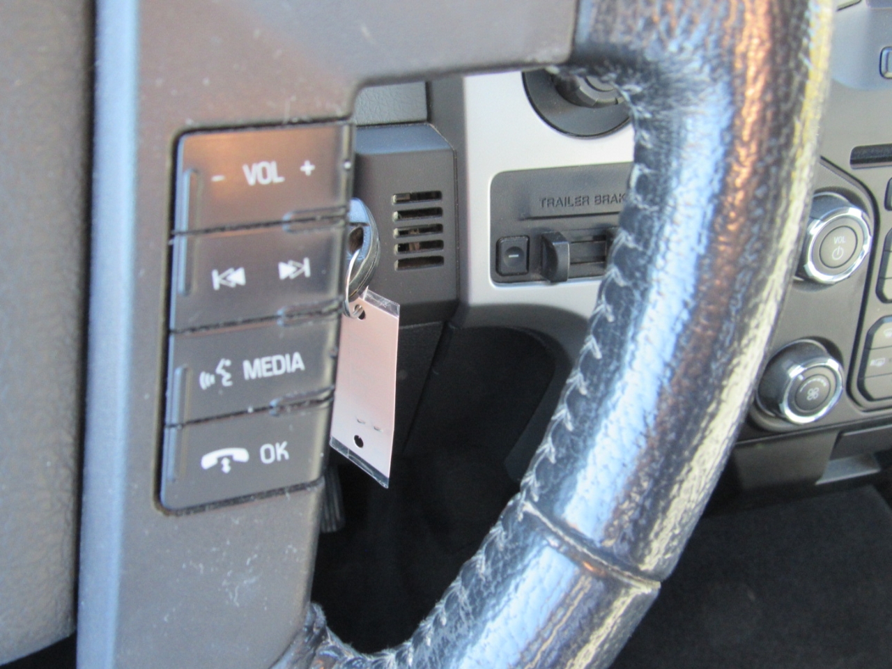This Blue 2013 Ford F-150 is not just tough, it's smart too. The Easy Fuel capless fuel filler system makes refueling a breeze, while the cargo lamp integrated with the high mount stop light provides added convenience. The removable tailgate with a key lock and lift assist makes loading and unloading a cinch.