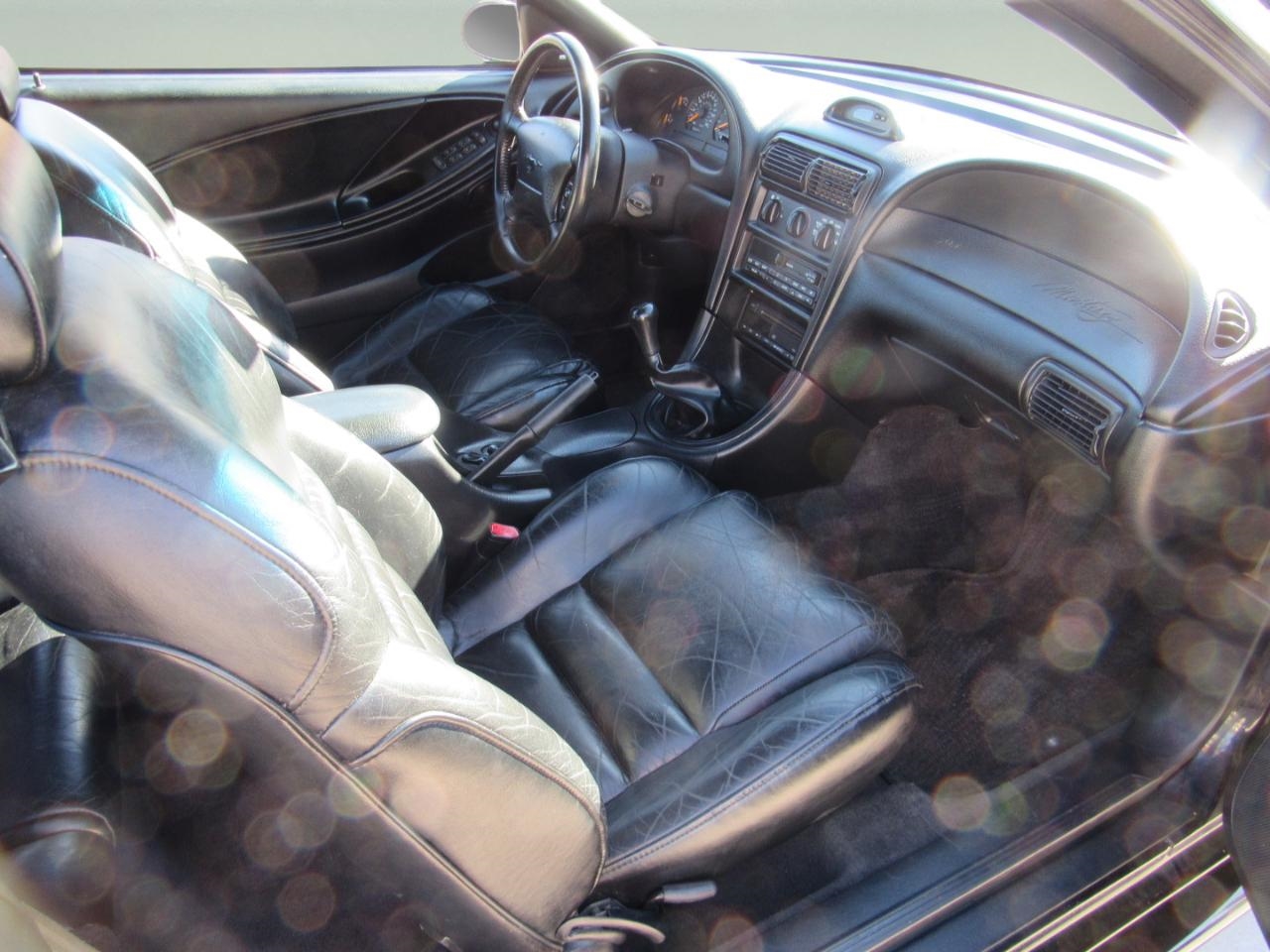 Safety is a top priority in this Mustang, with a Driver & Front Passenger Air Bag Supplemental Restraint System and 3-point active restraint safety belts. The full wrapover monochromatic trim and color-keyed cloth headliner exude a sense of luxury and comfort, making every drive a first-class experience.